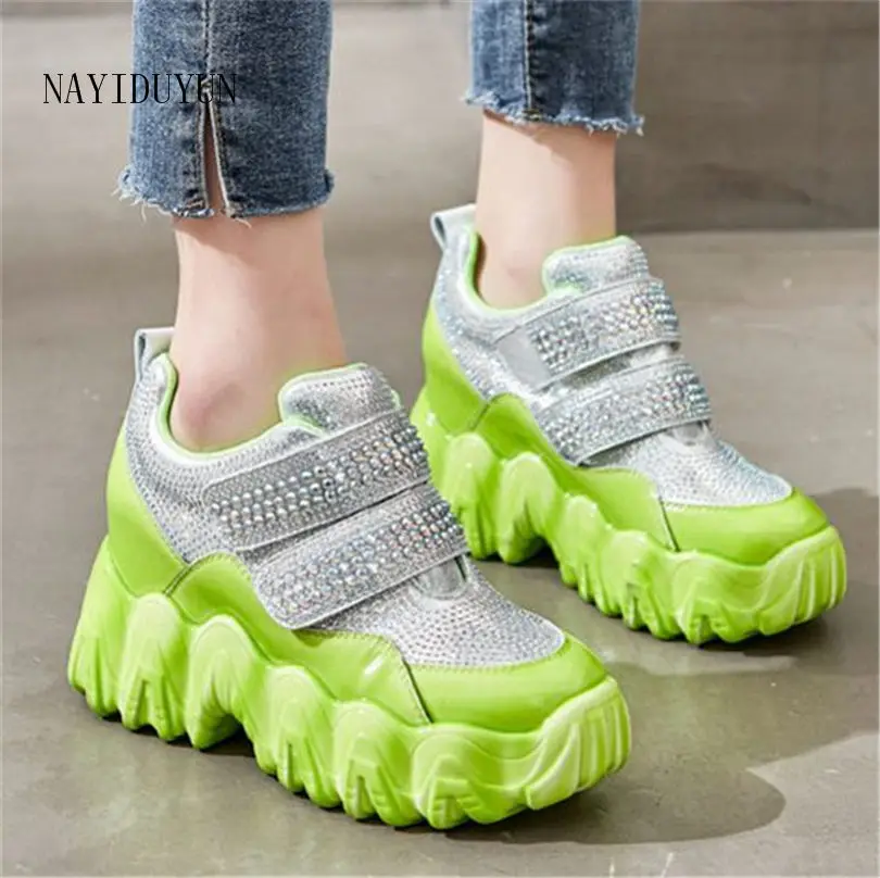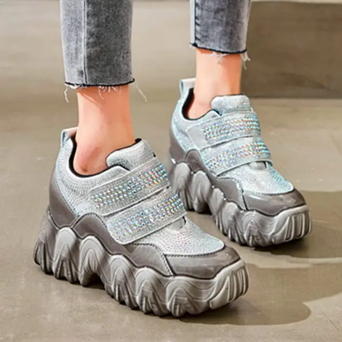 2020 Women Rhinestone Strap Leather Fashion Sneakers High Heel Platform Wedge Ankle Boots Casual Sh